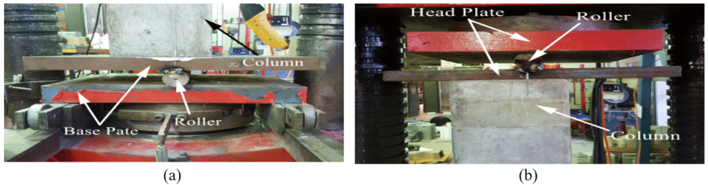 Figure 1. Eccentric Loading Setup by 2000 kN Capacity Apparatus; (a) Base Plate, (b) Head Plate (Elchalakani & Ma, 2017).