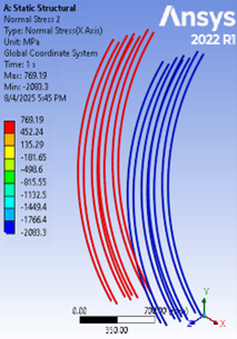 Figure 16. Normal Stresses in GFRP at Collapse Load for Sample H150-200
