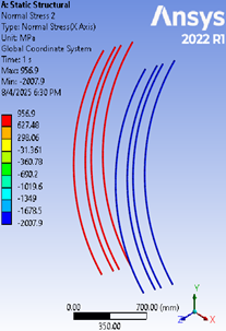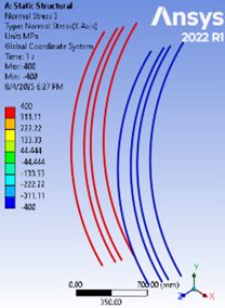 Figure 15. Normal Stresses in GFRP at Collapse Load for Sample G150-200