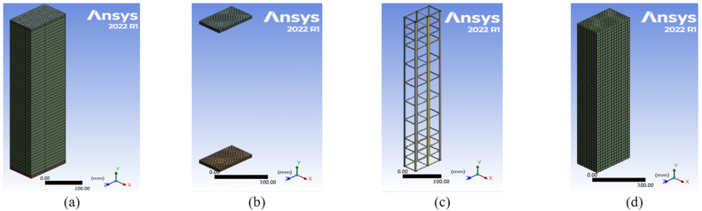 The following elements from the ANSYS Workbench 2022 R1 library were used to represent the proposed model: