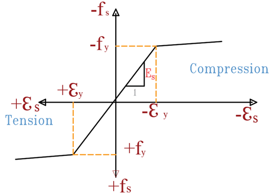 Figure 9. Strain Curve for the Steel Reinforcement (Heidarzadeh, 2022; Tao et al., 2013)