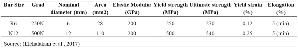 The yield strength and elasticity modulus were selected to align with the experimental research previously presented (Elchalakani & Ma, 2017), ensuring that the computational model corresponds to the experimentally studied model for comparison.