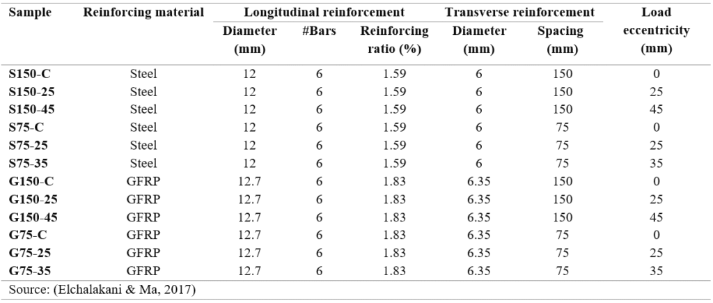 This study comprised an experimental investigation of 17 concrete specimens and 13 reinforced concrete (RC) column specimens, which were subjected to various loading conditions until failure. The objective of this study was to ascertain the impact of eccentric loading on RC columns and to examine the effects of plasticity, stirrups spacing, and axial capacity (Elchalakani & Ma, 2017).