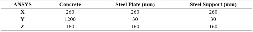 Table 4. Dimensions of the Concrete Element and the Upper and Lower Support Plates.